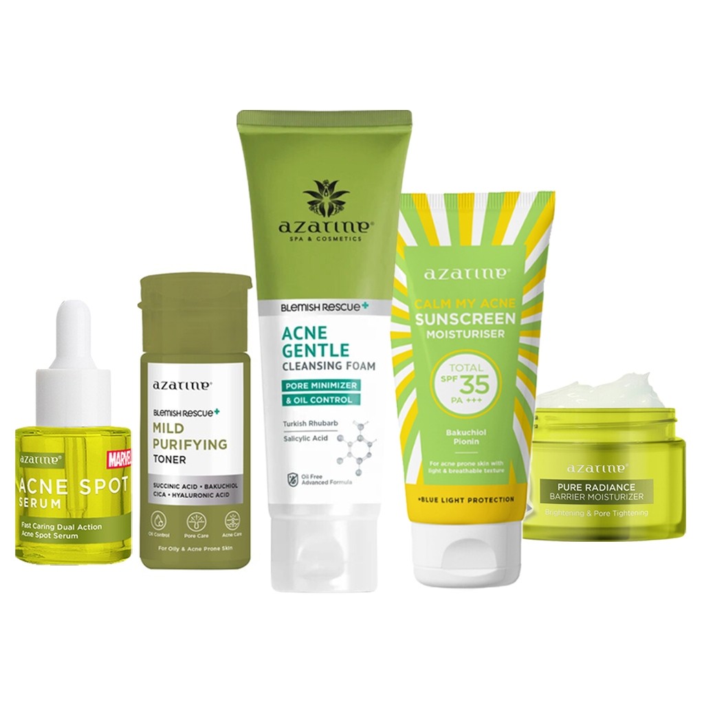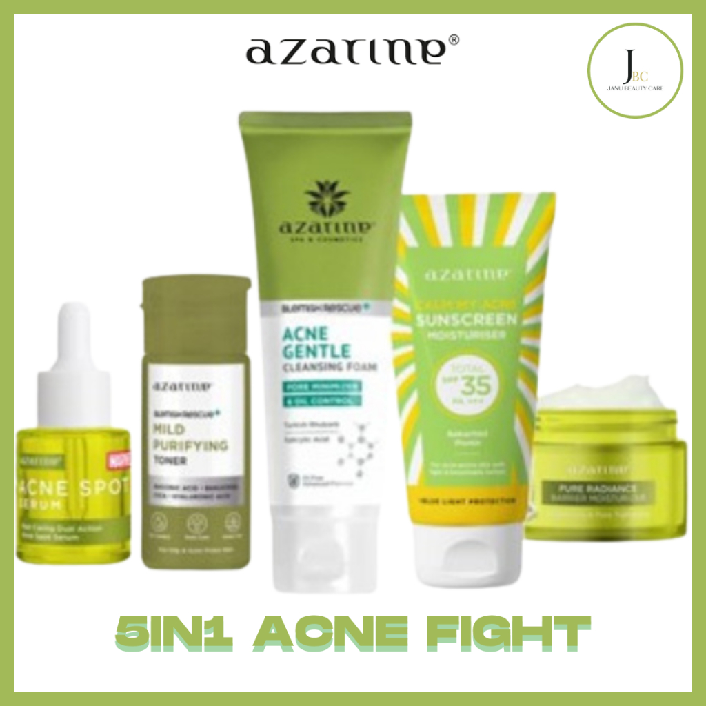 AZARINE Paket Acne Lengkap 5IN1 Skincare Wajah Berjerawat Berminyak Beruntusan