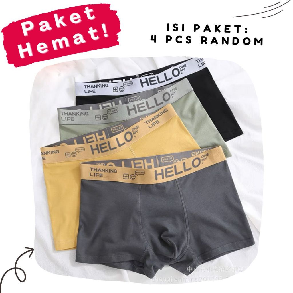 [ PAKET HEMAT ] BX1387 4 Pcs Bundle Boxer Pria Cowok Motif Daleman Bahan Lembut Celana Dalam