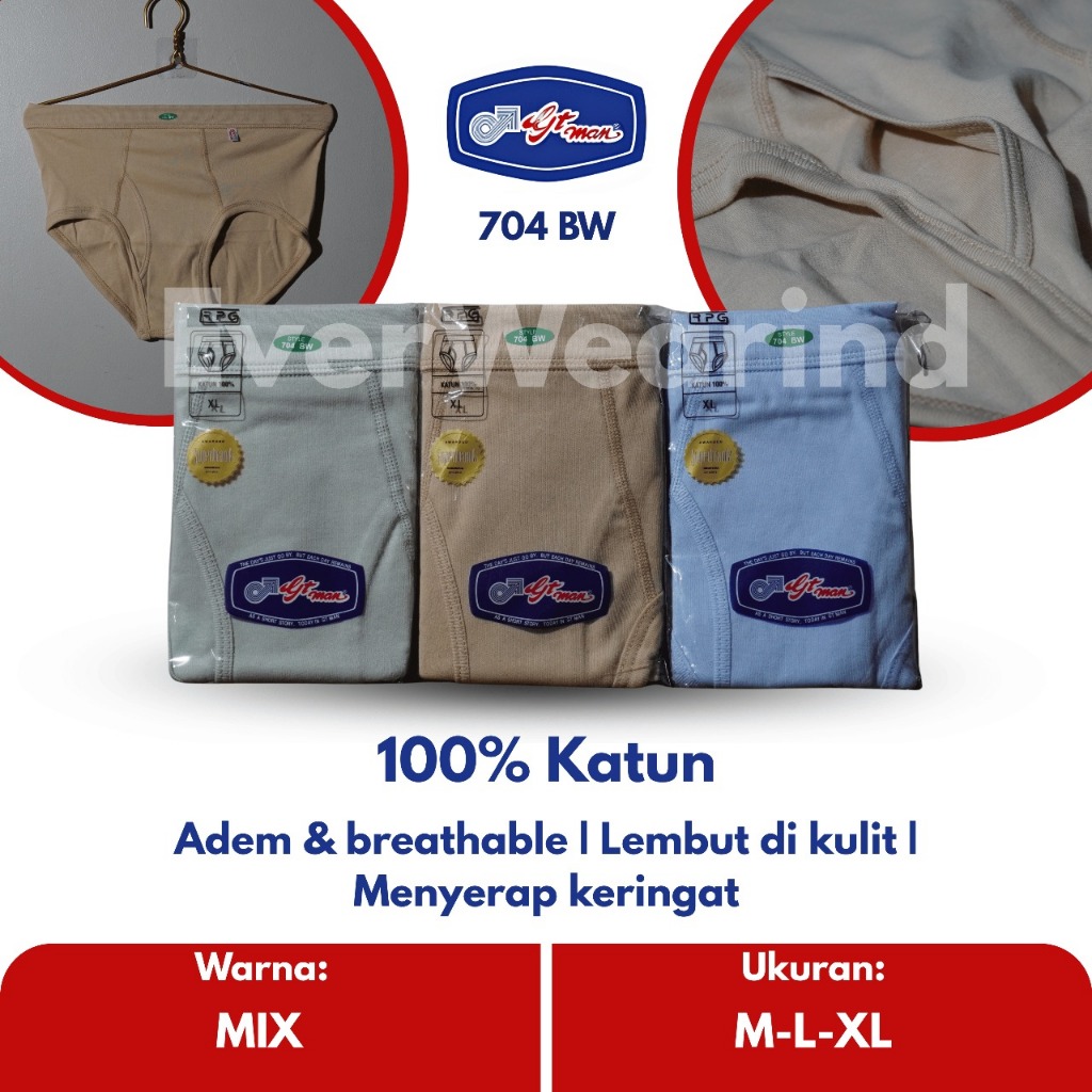 Celana Dalam Pria GT Man 704 BW Brief 100% Katun | M-XL | 3 pcs | Warna Mix