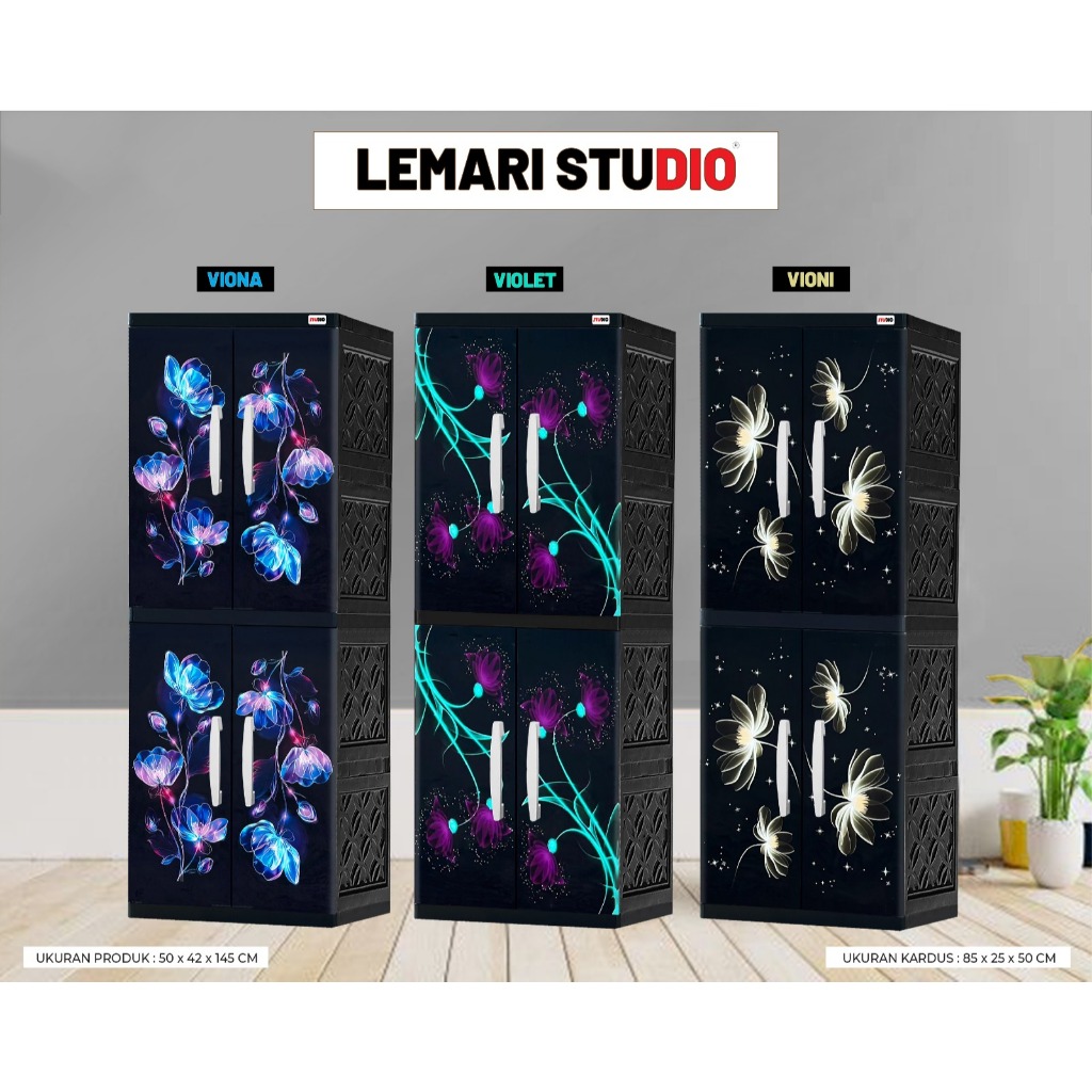 STUDIO - Lemari Pakaian Plastik Jumbo 2 Pintu Susun 4 Motif Printing