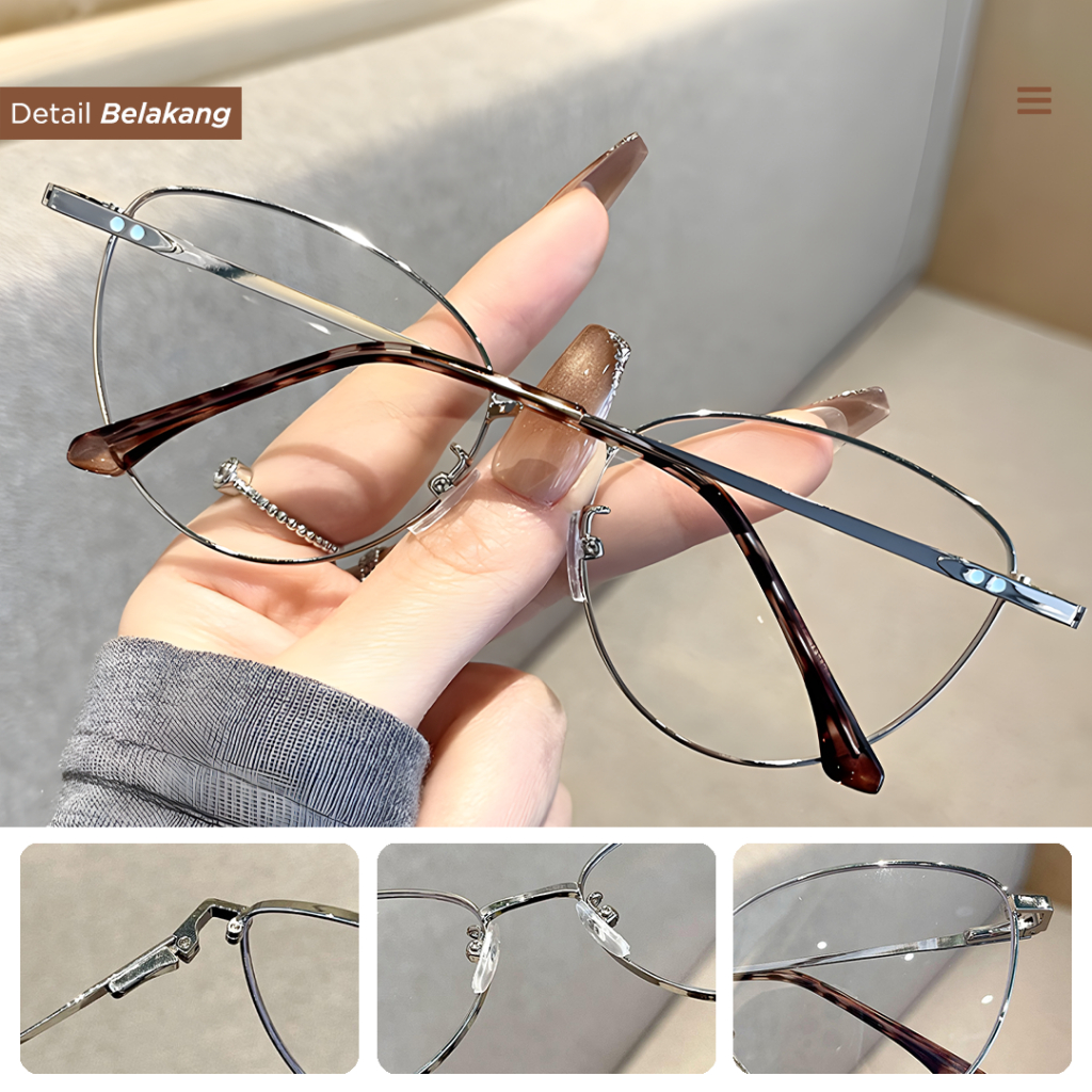 Colore.in Kacamata Photocromic Wanita Lensa Minus Anti Radiasi Blueray Kacamata Fashion Metal Material Bentuk Cat Eye St