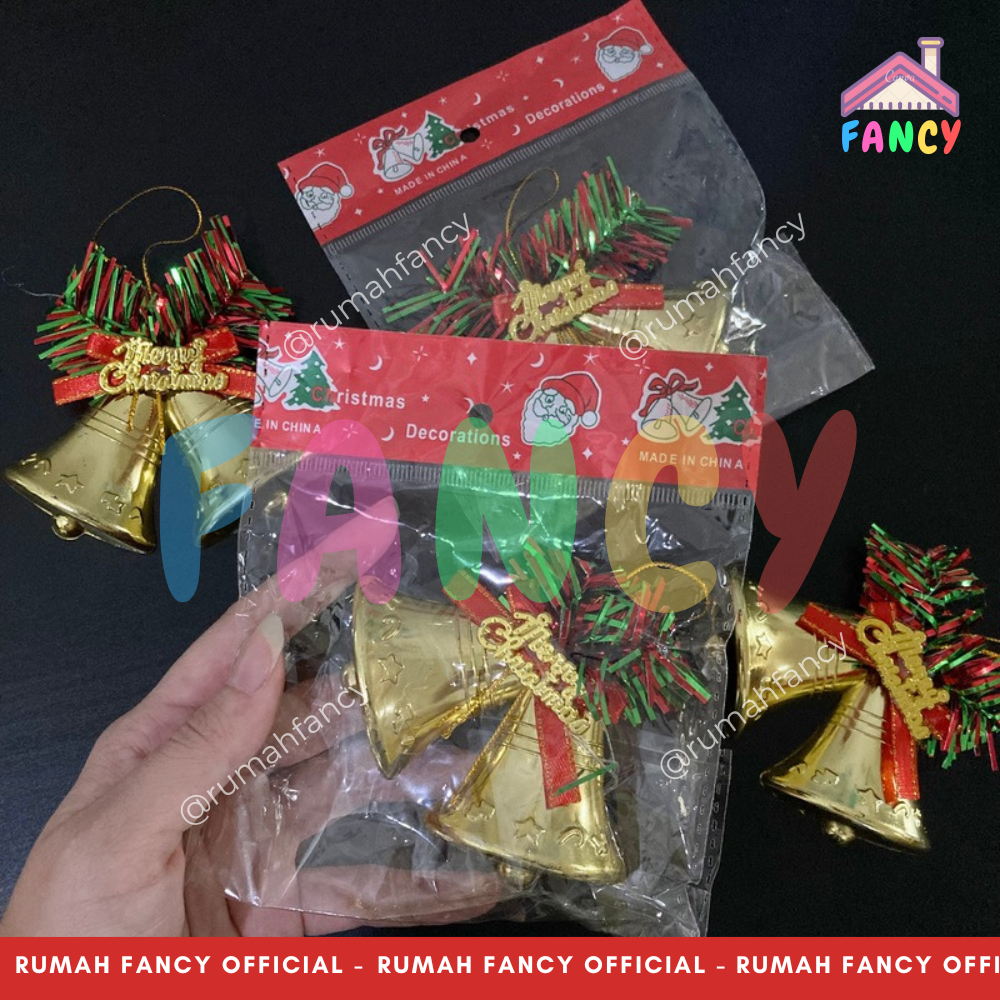 ( HARGA PROMO ) Gantungan LONCENG Half Merry Christmas Pita Rumbai Hiasan Natal PREMIUM Ornamen Pernak pernik Pohon Nata