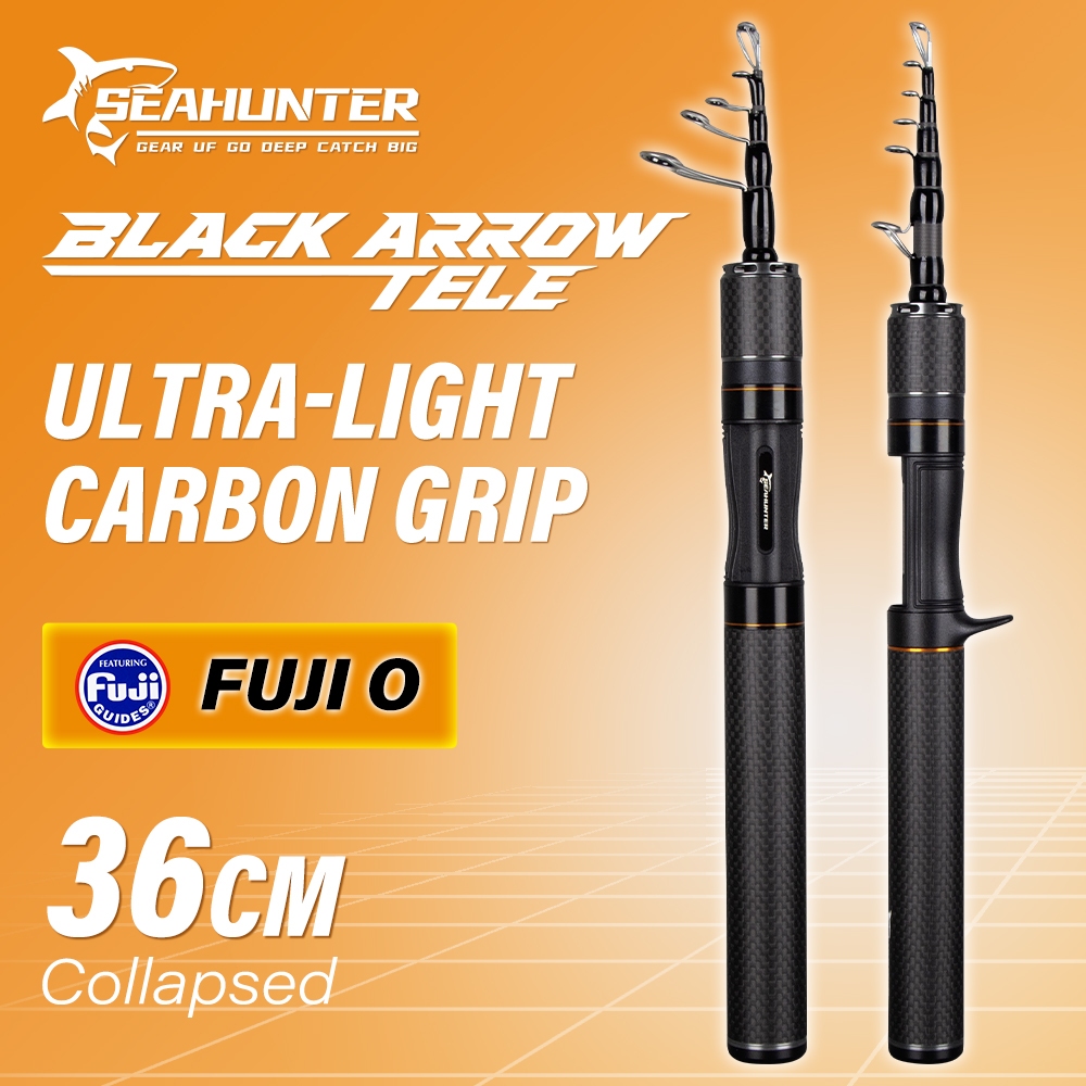 SEAHUNTER Black Arrow Telescopic Rod Joran Pancing, FUJI O Ring 1.5m/1.68m/1.98m Long Castking Rod,30T Batang