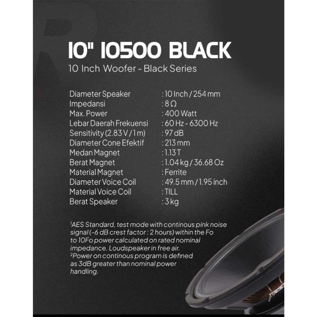 speaker ACR 10" 10500 10in 10 inch black woofer