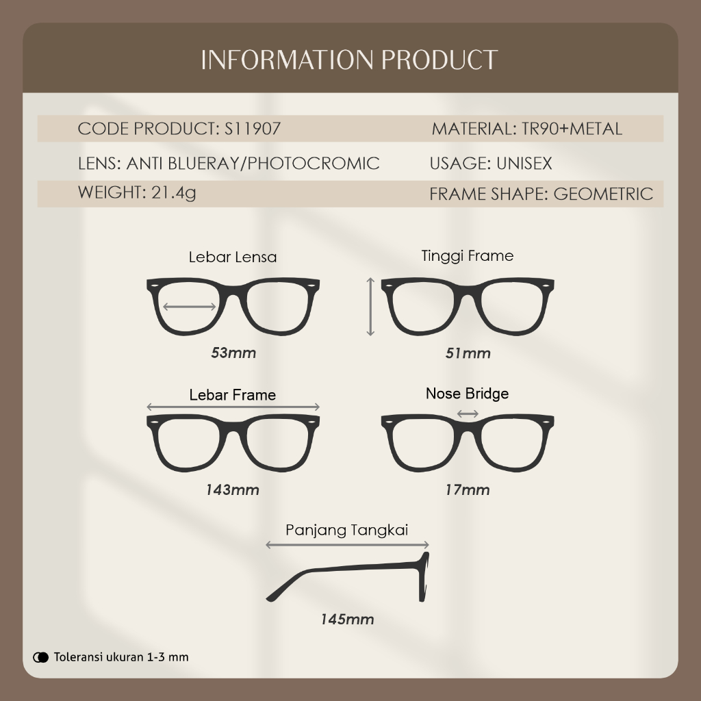 Gently Morley Kacamata Anti Radiasi Minus Anti Blueray Photocromic Bluecromic Geometri TR90 Metal Trend Fashion S11907