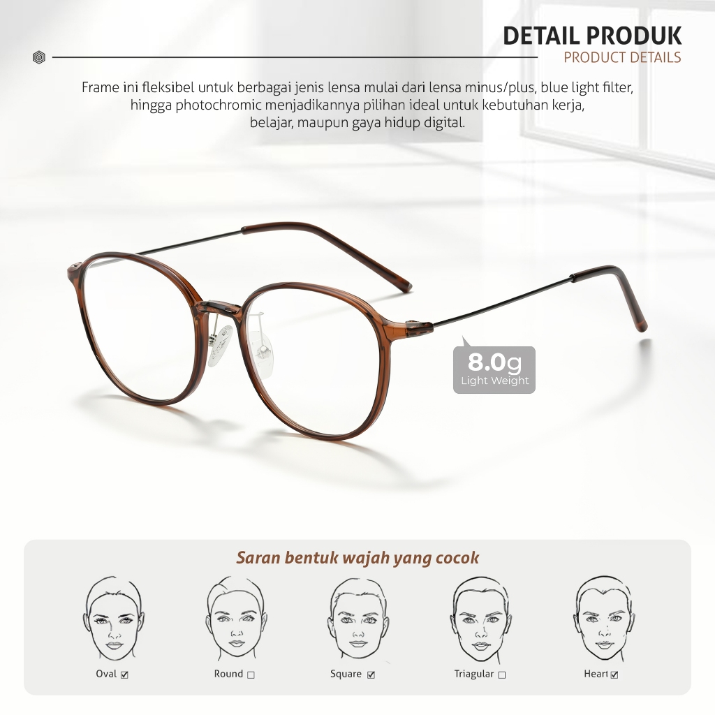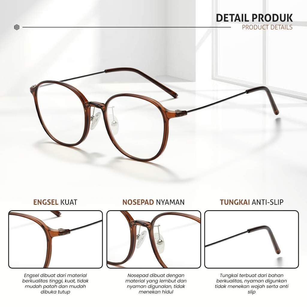 Colore.in Kacamata Anti Radiasi Bluecromic Photocromic Bentuk Bulat Fashion Glasses Round Style 7182