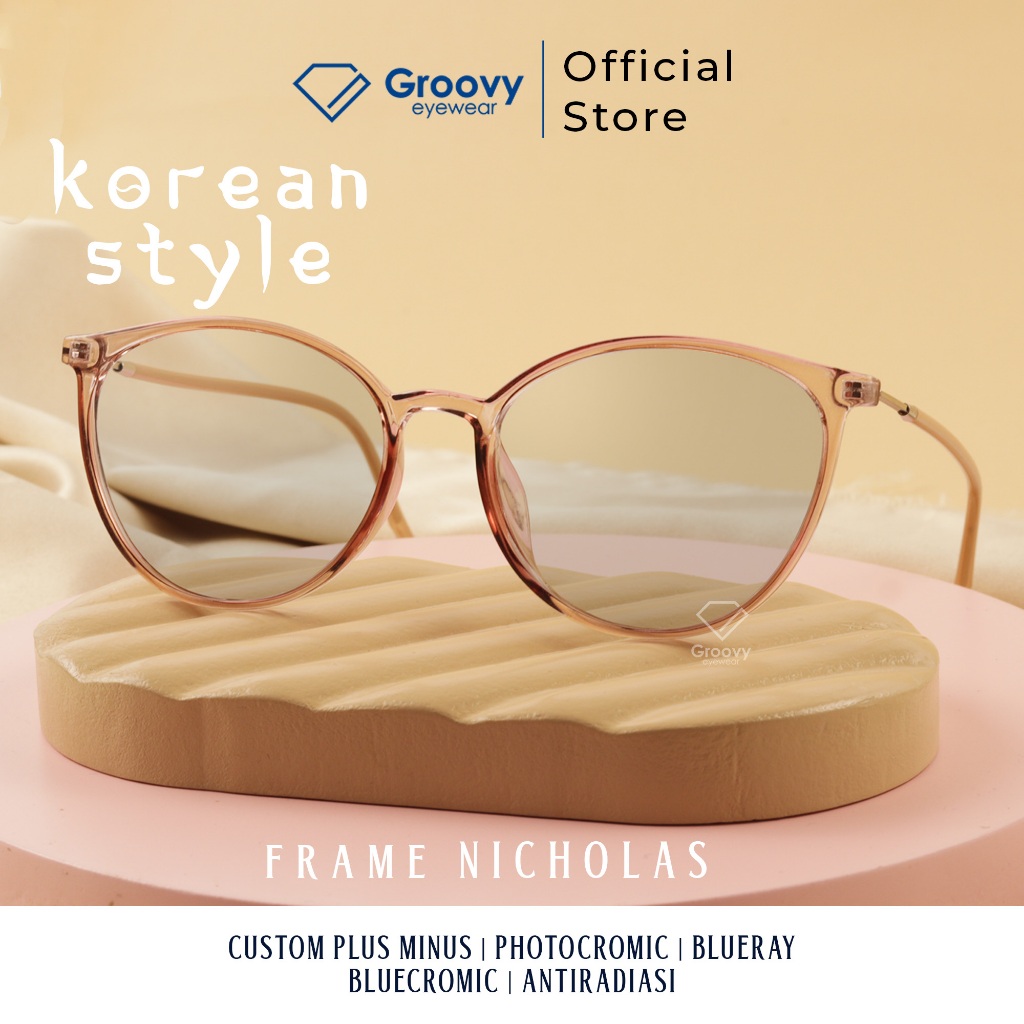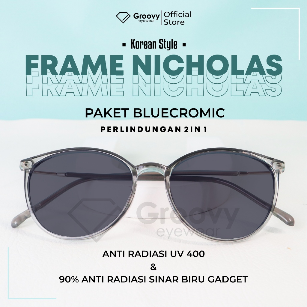 Groovy Eyewear - Frame Kacamata Minus Nicholas Lensa Photocromic Blueray Bluecromic Antiradiasi