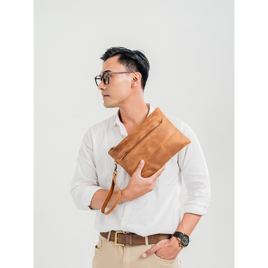 [Star] Kenes Leather Clutch Tas Tangan Unisex Kulit Asli CALVIN - Free Gravir Nama