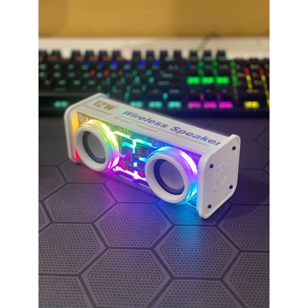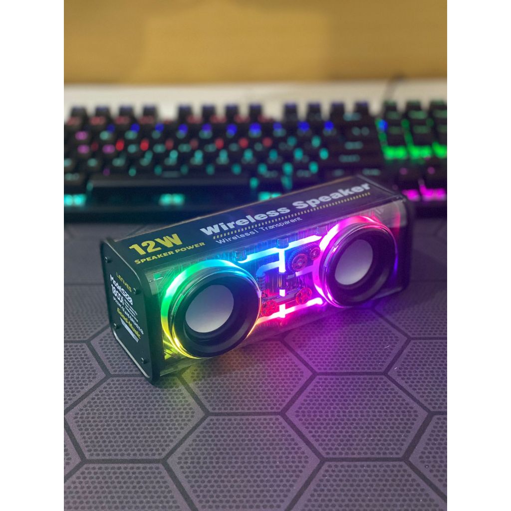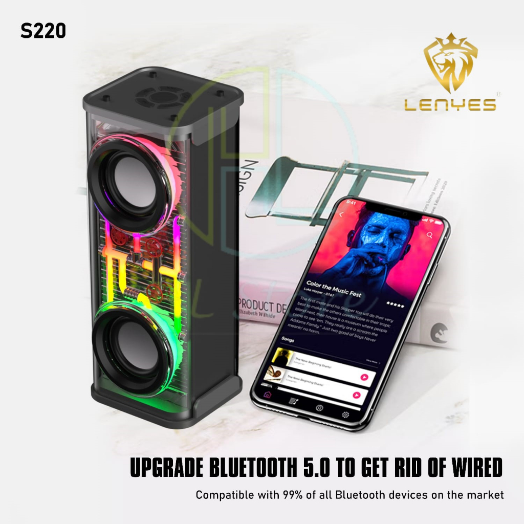 LENYES S220 SPEAKER PORTABLE RGB LIGHT DUAL SPEAKER 18WATT 1800mAh Bluetooth 5.3 TWS Mode SuperBass Gaming speaker Estetik Transparat
