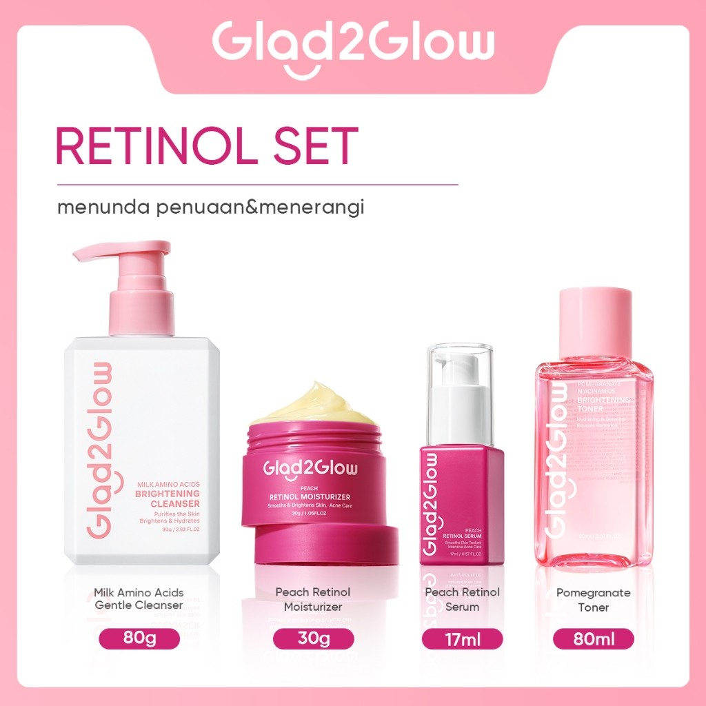 [100 PERSEN ORI]Glad2Glow 4pcs Bundle 4in1 Paket Skincare Moisturizer Serum Face Wash-ACNE KIT GLOWING KIT Dark Spot VC Bright Barrier Set