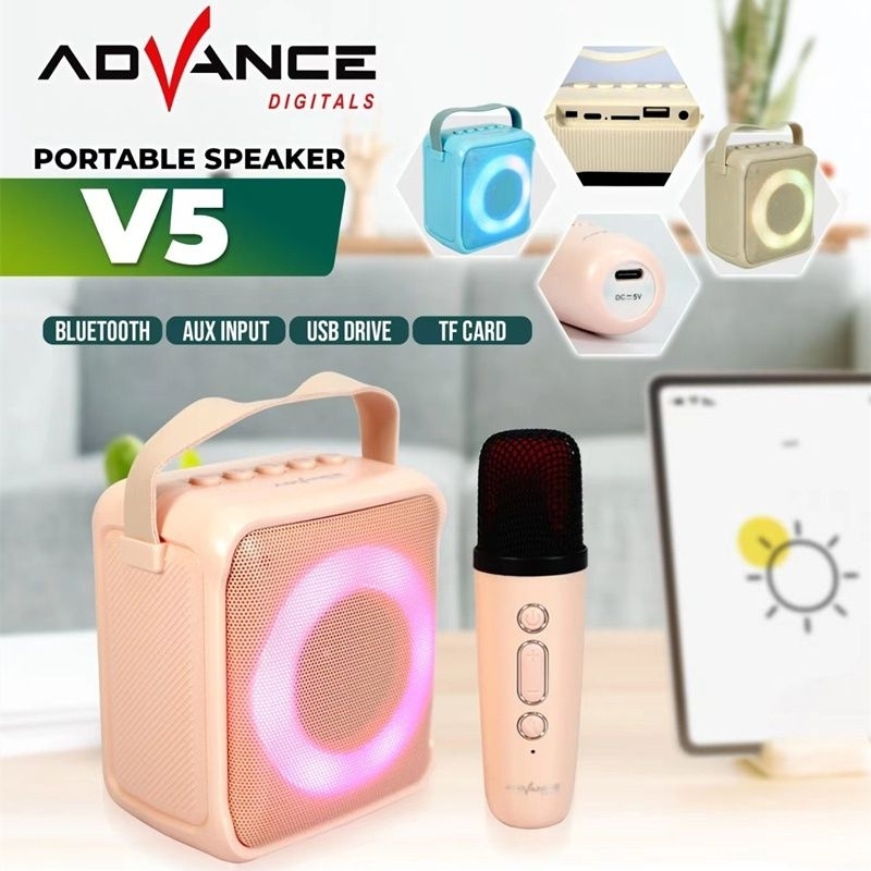 Advance V5 Speaker Bluetooth Bonus Mic Wireless Karaoke Radio FM Portable Salon Aktif Extra Bass