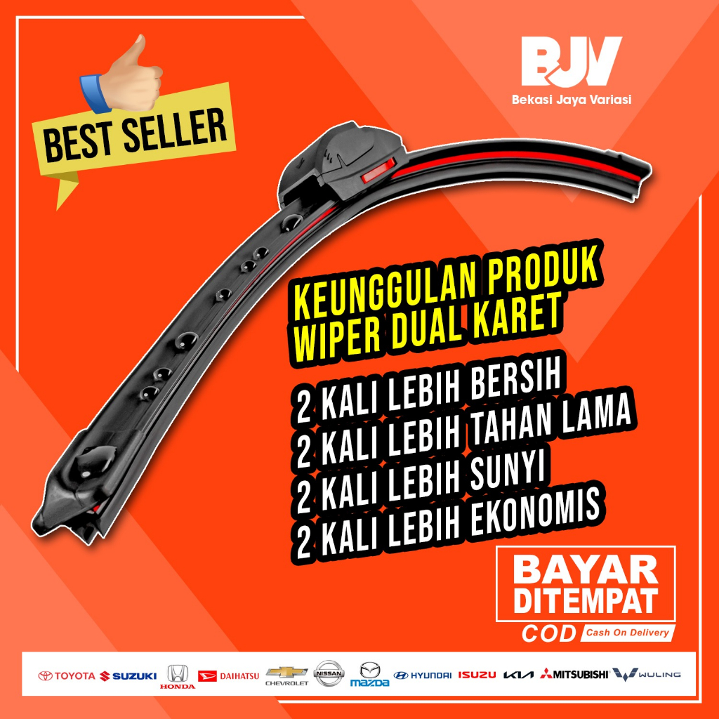 Wiper Mobil Dual Blade - Universal Semua Tipe Mobil - Wiper Frameless Dual Karet Double Blade Layer