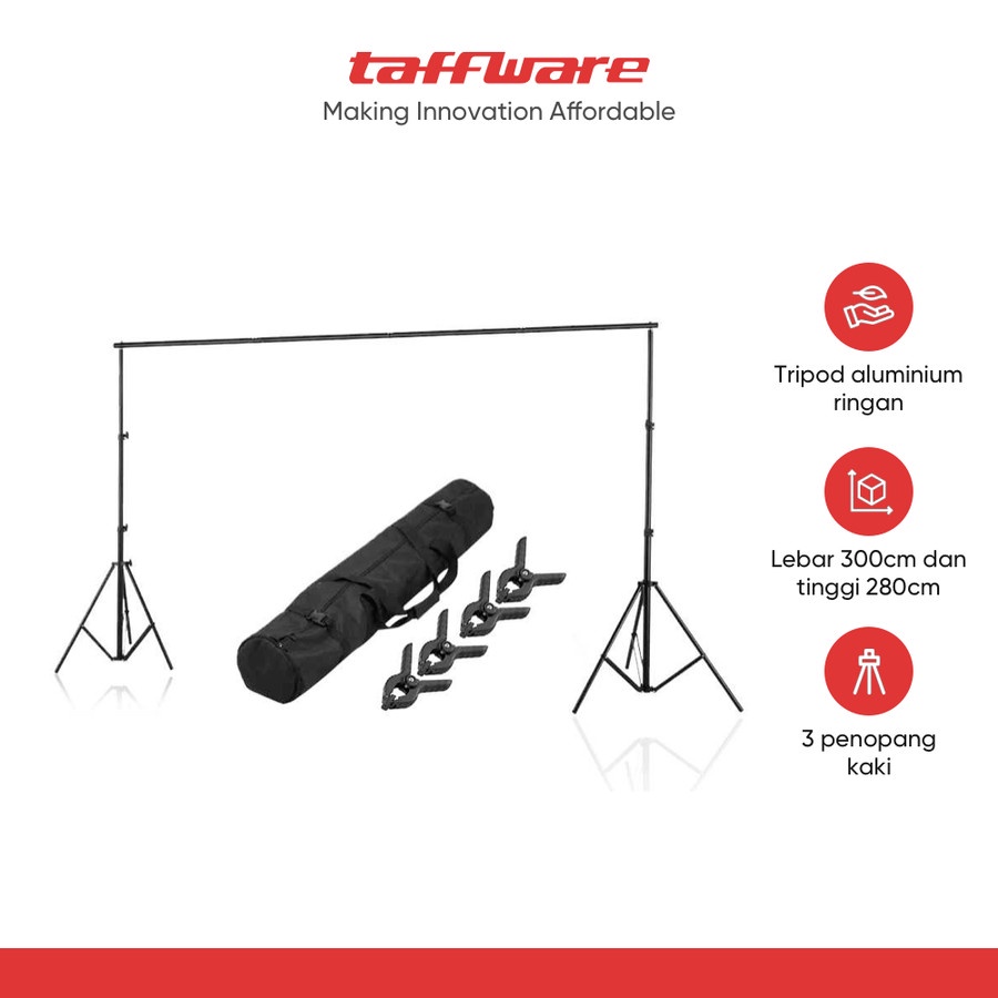 TaffSTUDIO Tripod T-Shaped Bracket Stand Backdrop Foto Studio Background Frame 280 x 300 cm - DD-112