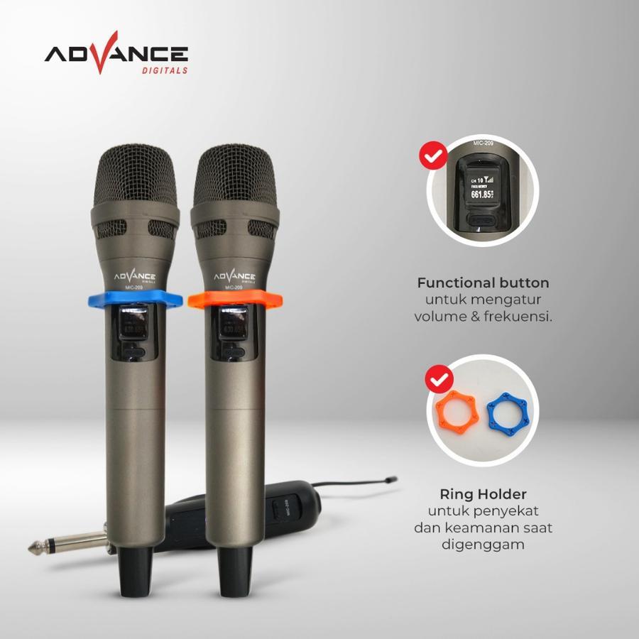 Advance MIC-209 Double Mic Wireless Recharger Bisa digunakan untuk Souncard&Speaker Garansi Resmi 1 Tahun Microphone Bla