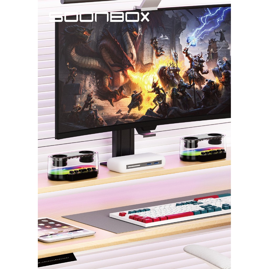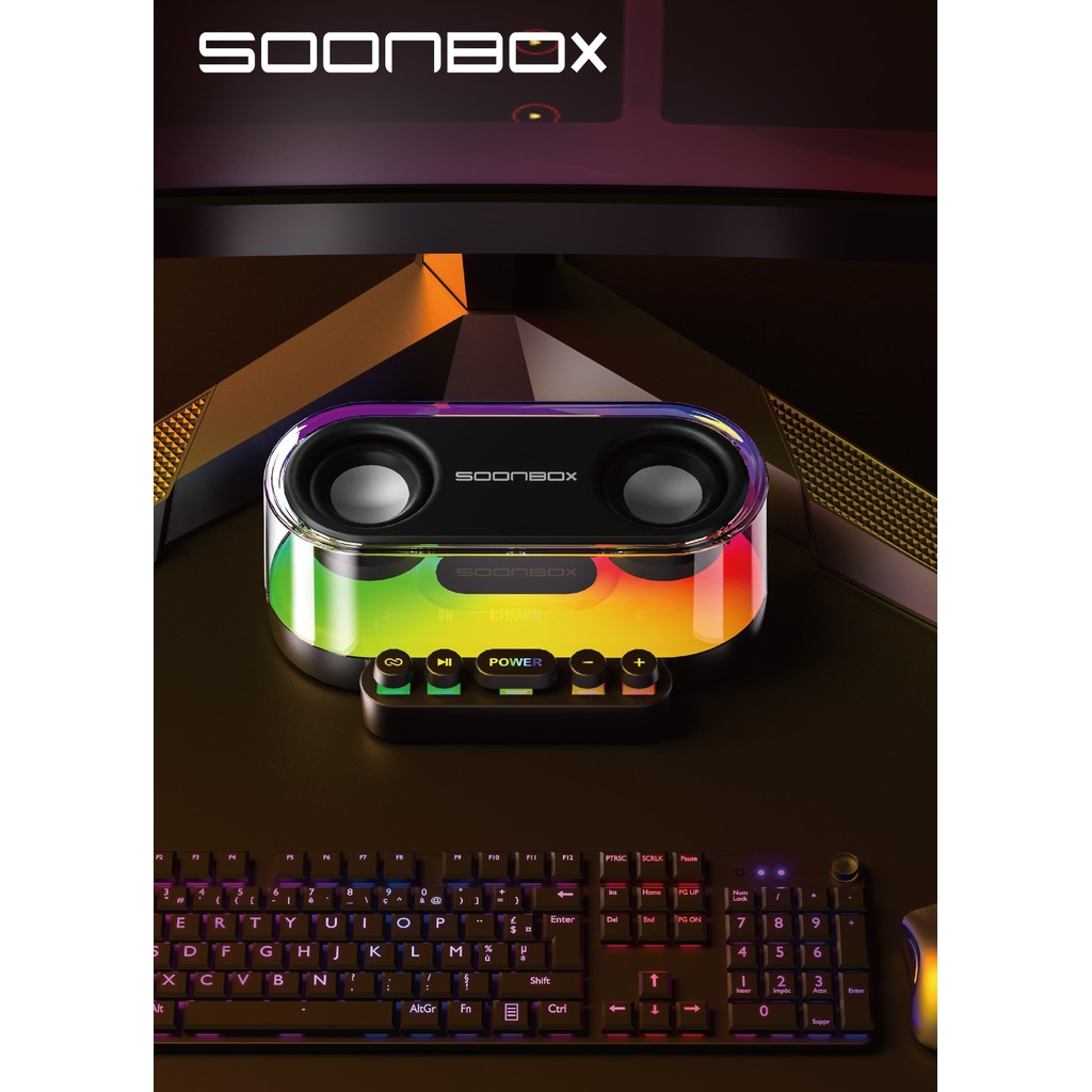 SOONBOX S302 Speaker Bluetooth 5.3 Portabel 20W Suara 360° LED Light Bass Sound + Mechanical Button