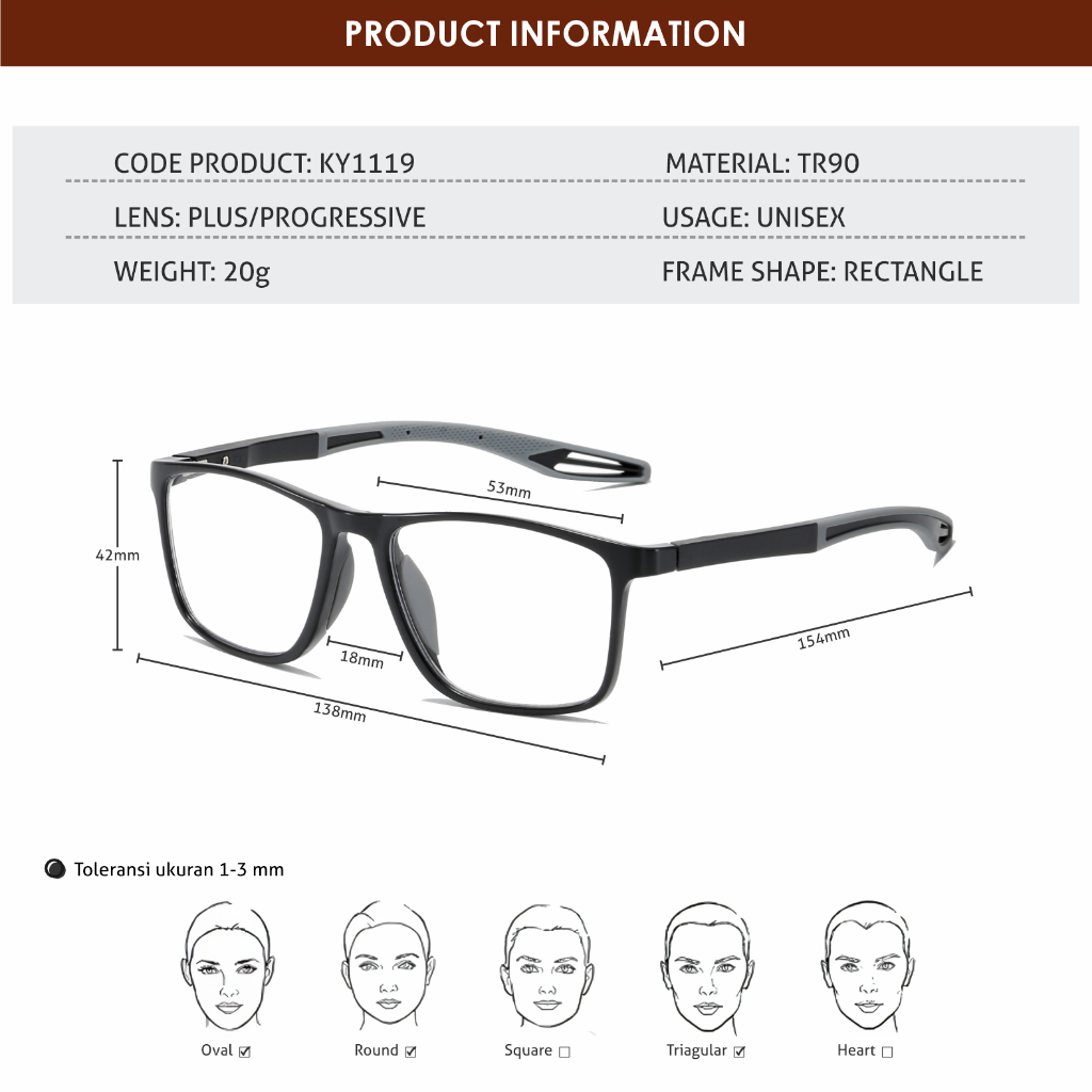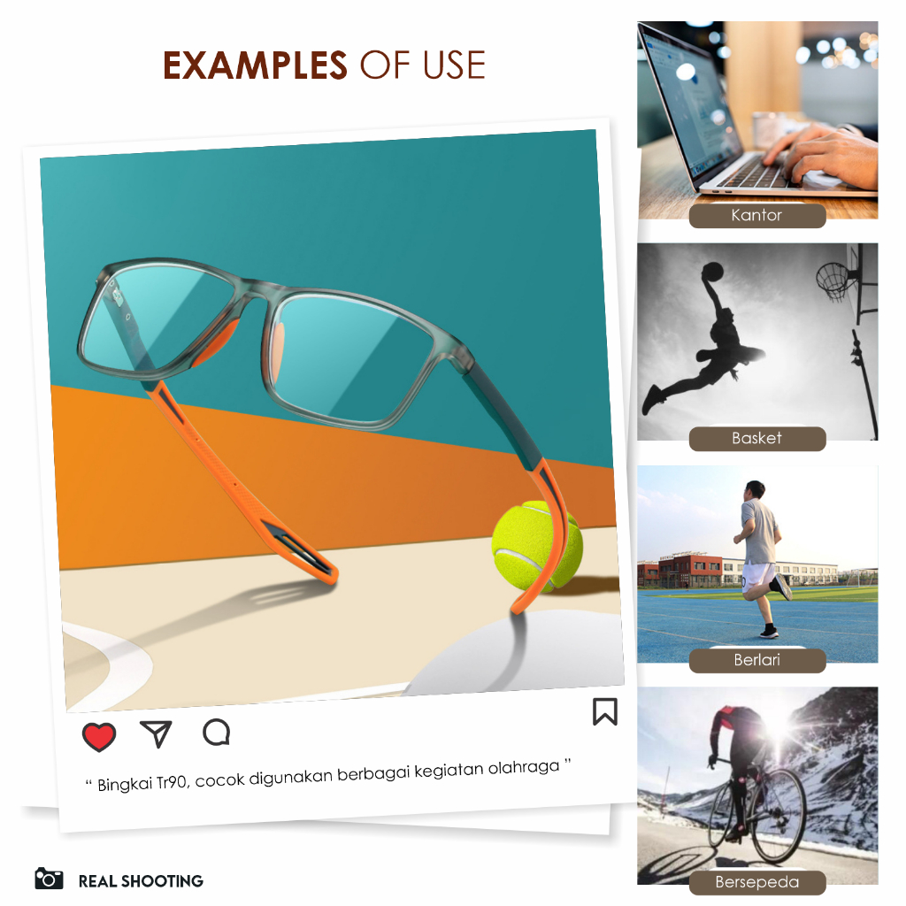 Colore.in Kacamata Sport Photocromic Minus Anti Radiasi Persegi TR-90 Frame Anti UV400 KY1119/81278