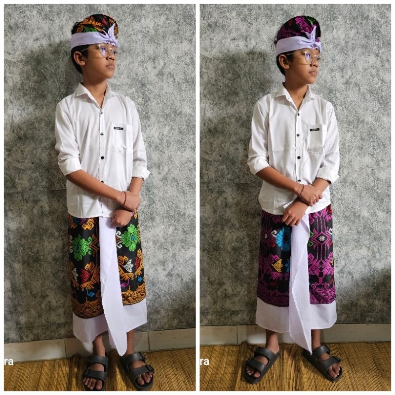 Setelan Pakaian Adat Bali Kamen dengan Udeng Bali Ukuran Anak XL dan XXL