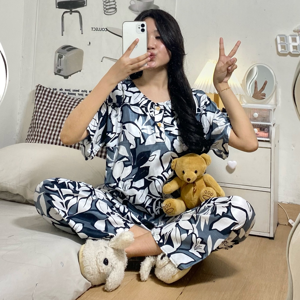 Baju Tidur Wanita Setelan Celana Panjang Baby Doll Bahan Rayon Adem Busui Friendly LD 110 Etalase 2