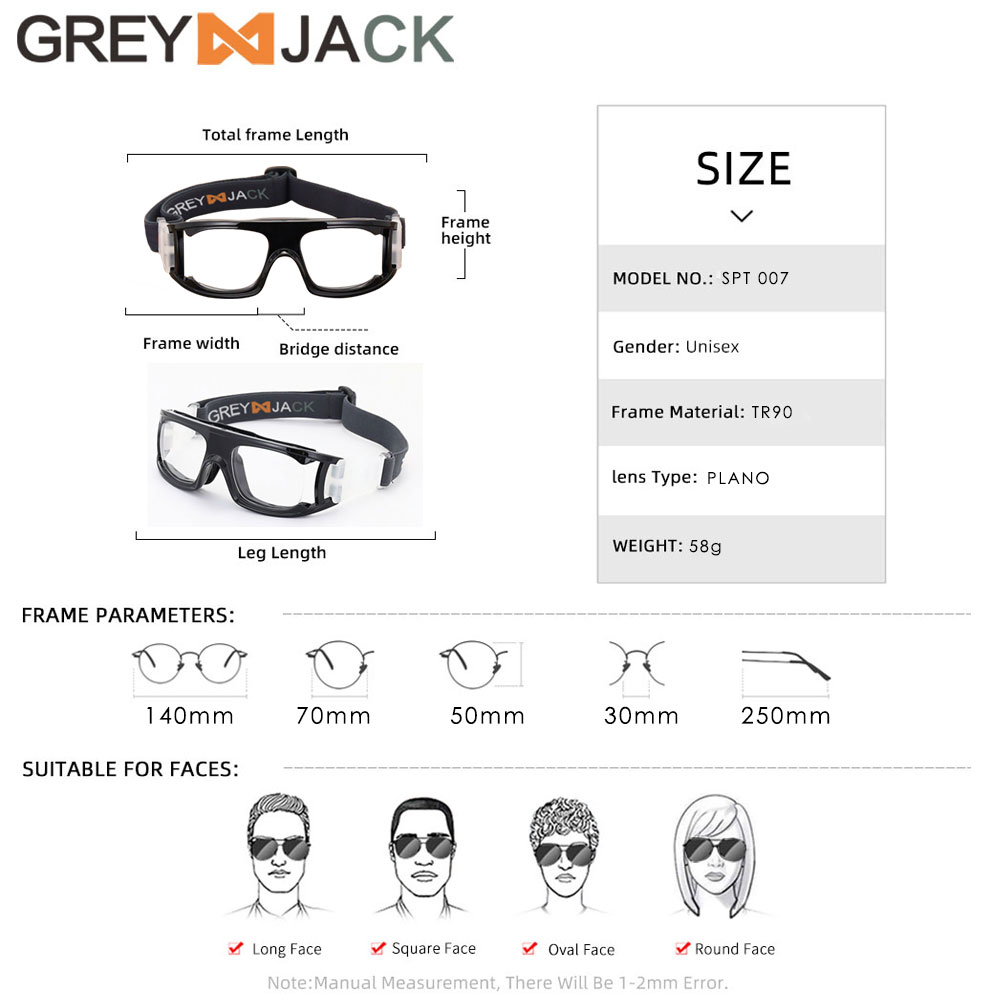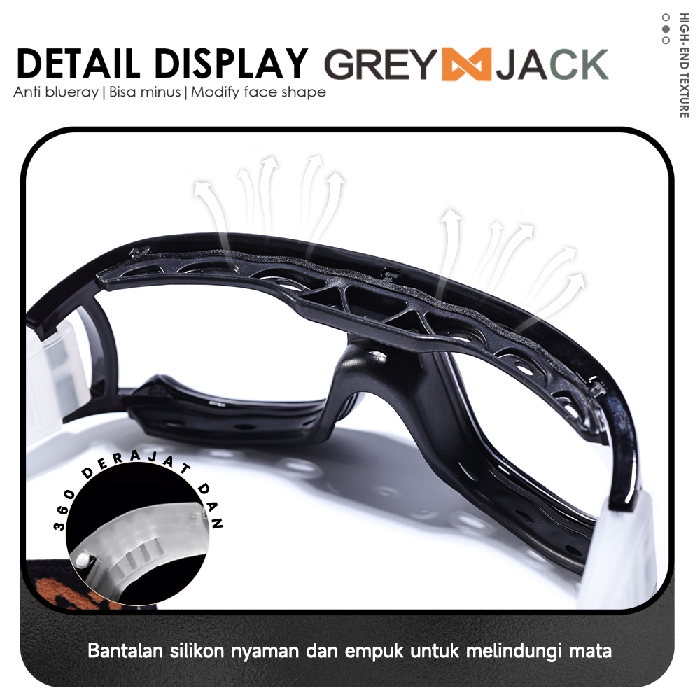 Grey Jack Frame Kacamata Olahraga Sport Sepak bola/Tenis/Basket/Futsal TR+Silicone Kokoh Bisa Minus Antiradiasi Blueray