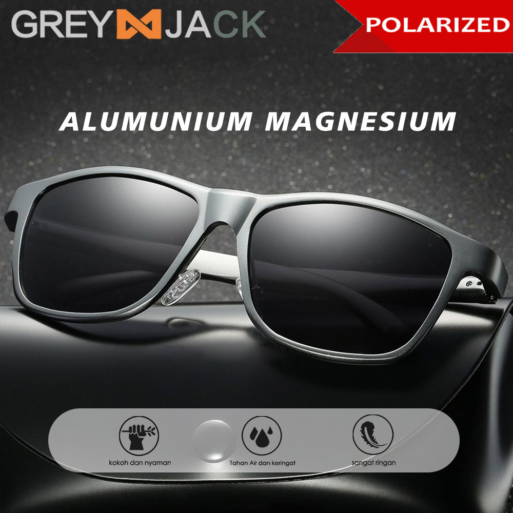 Grey Jack Kacamata Hitam Sunglasses Polarized Anti Silau UV400 Model Kotak Alumunium Magnesium Fashion Laki-laki dan Wan