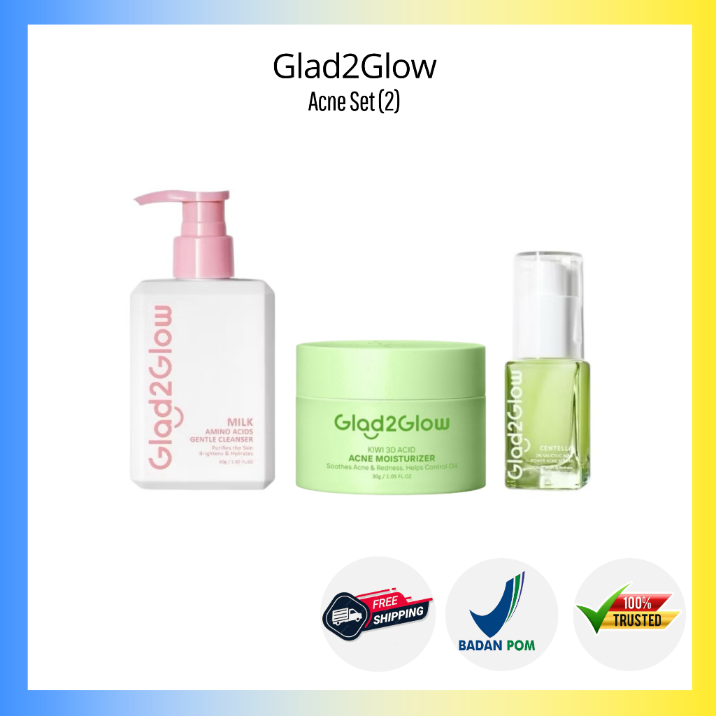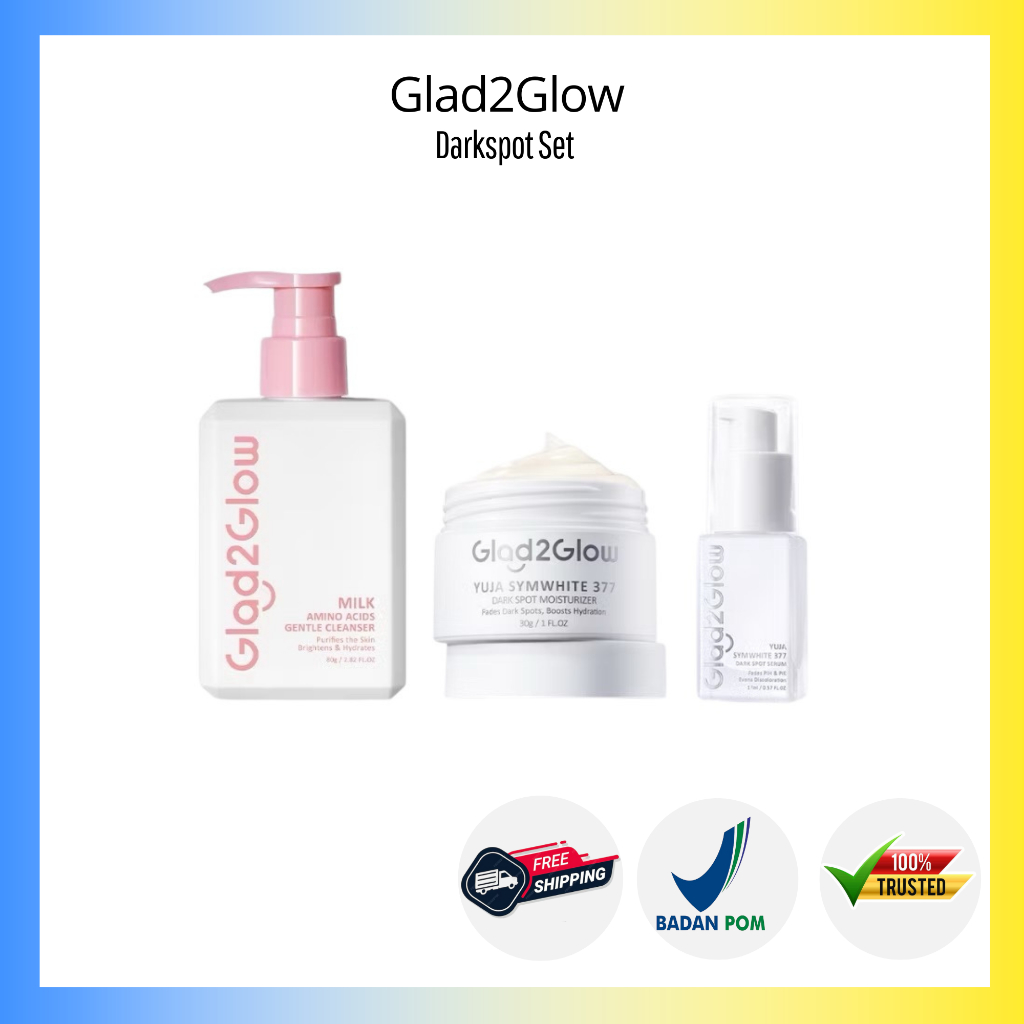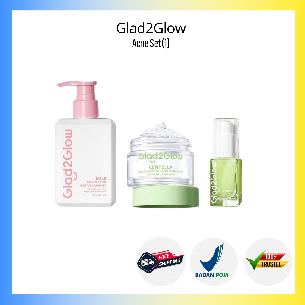 Glad2Glow Special paket 3 Pcs Glowing Set 3in1 Paket Skincare Cleanser Amino Moisturizer dan Serum - Pomegrante, Centella Yuja Symwhite Blueberry Moisturizer Bright vitamin C jeju