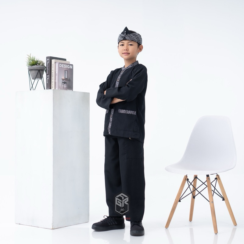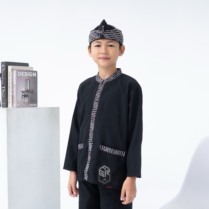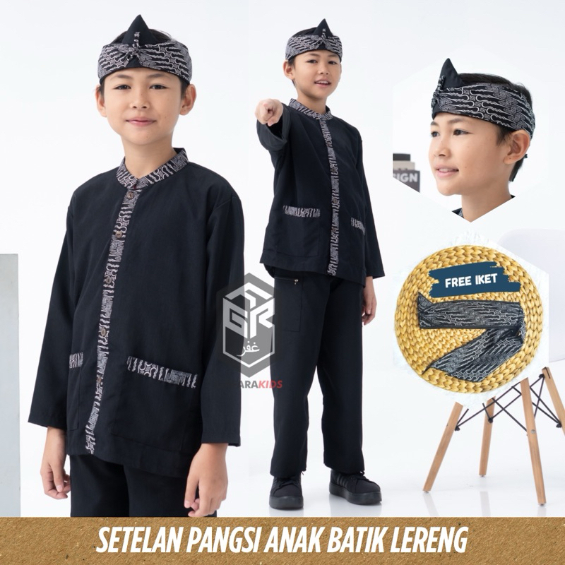 Setelan Pangsi Anak Motif Batik Hitam Putih Bahan Bestway Premium Usia 4-15 tahun Gratis Iket Kepala Terbaru By Gafara K