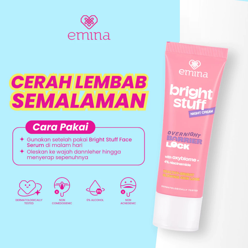 (TERMURAH PAKET KECIL) - Emina Bright Stuff Series isi 6Pcs (Micellar, FW, Toner, Moist,Night Cream SunBattle)-Skincare Basic