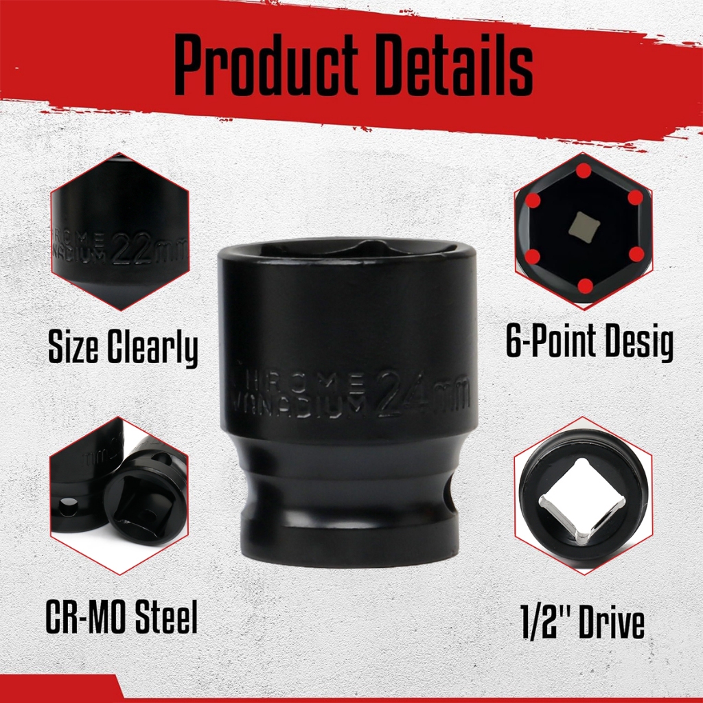 [PROMO] Mata Shock Pendek 12 Drive Shallow Impact Socket 824MM 6Point Eceran Satuan Kunci Sok Untuk Ber