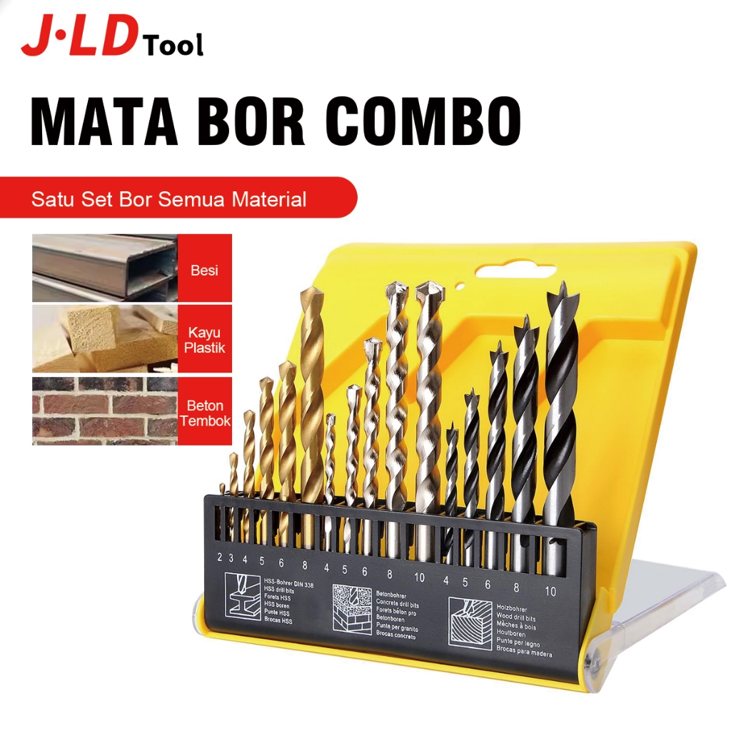 [PROMO] Mata Bor Kombinasi 16Pcs MultiPurpose Drill Bit Set Mata Bor (KayuBesiTembokBetonHSS) Mata Bor