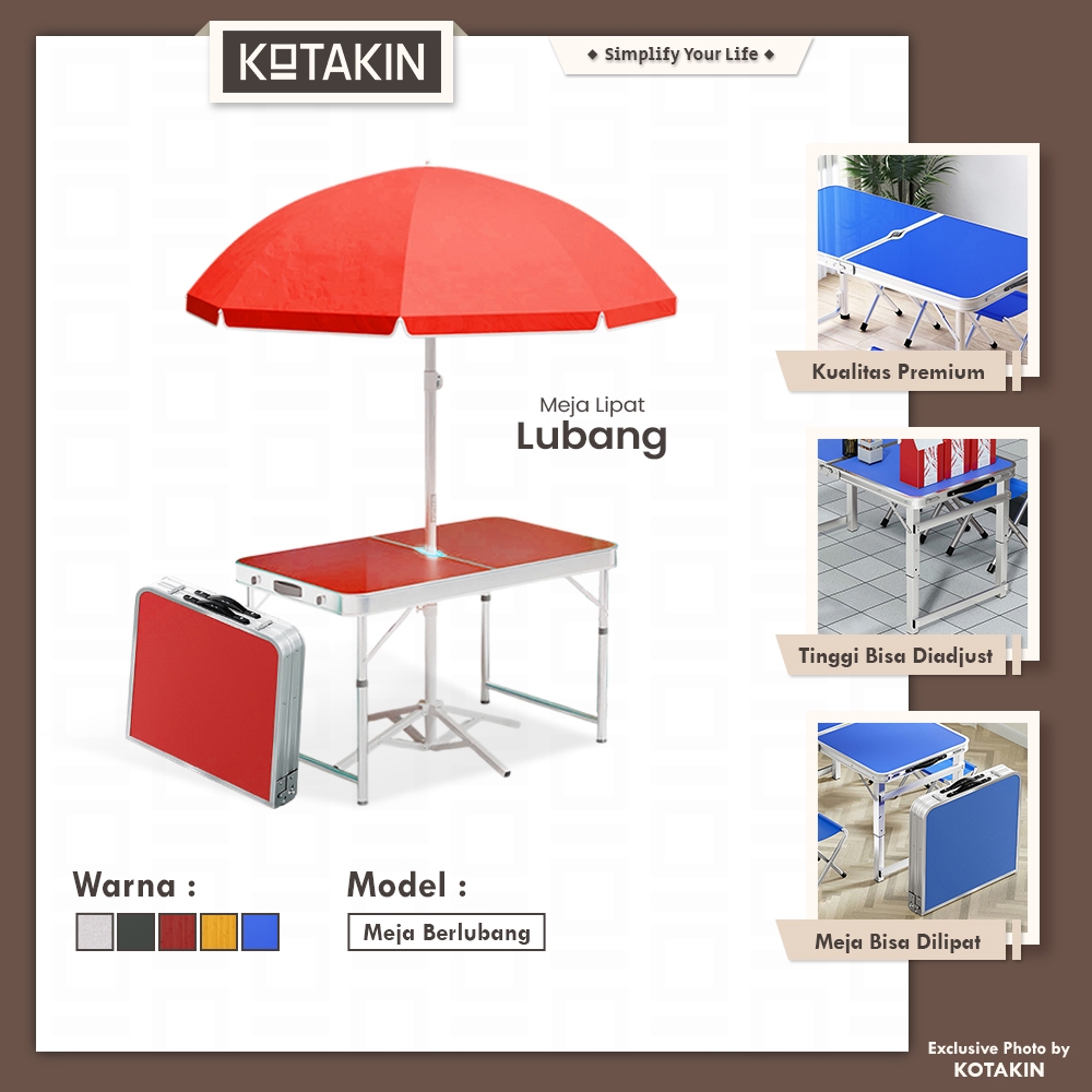 KOTAKIN Meja Lipat Dengan Lubang Payung Jualan Stand Bazar CFD Flipper Table Outdoor Portable Serbaguna