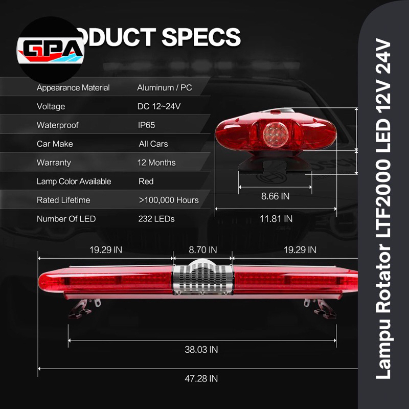 Lampu LED Emergency Angkutan LTF2000 Ambulance 12V 24V Merah Federal