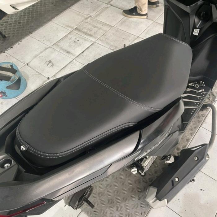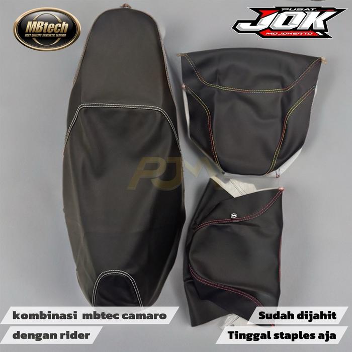 KULIT JOK MBTECH STAPLES JAHIT TENGAH MOTOR MOTIF JERUK TUTUP JOK PEMASANGAN KE TUKANG JOK - HITAM, VARIO 110/125/150