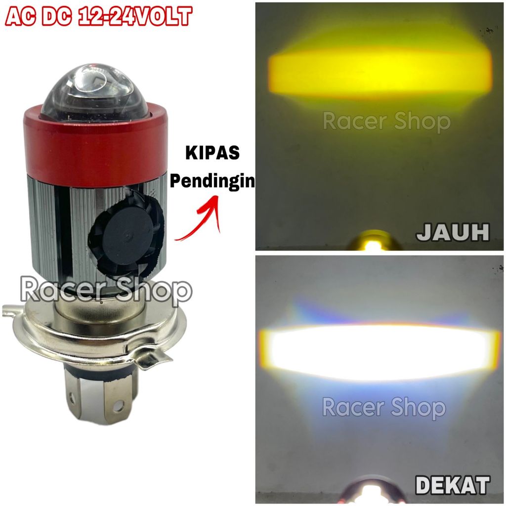 Lampu Utama LED Laser Kipas H4 Projector Premium Super Terang Putih Putih AC DC