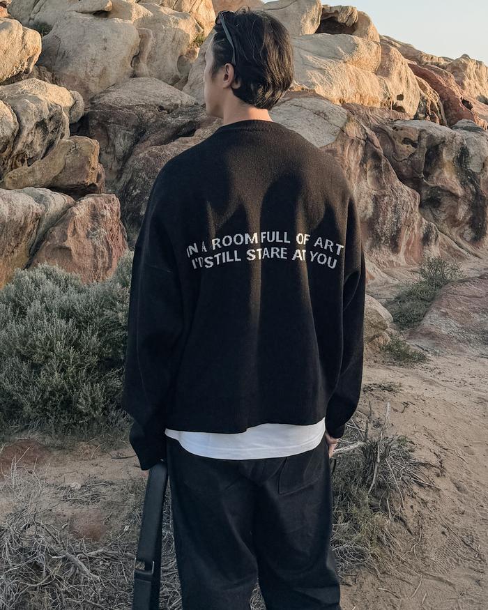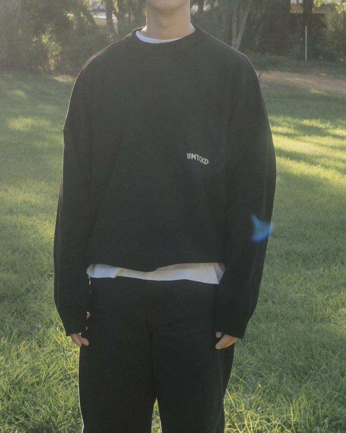UNTCKD - STARE KNIT SWEATER (SWEATER RAJUT HITAM CROP BOXY) - SIZE 1