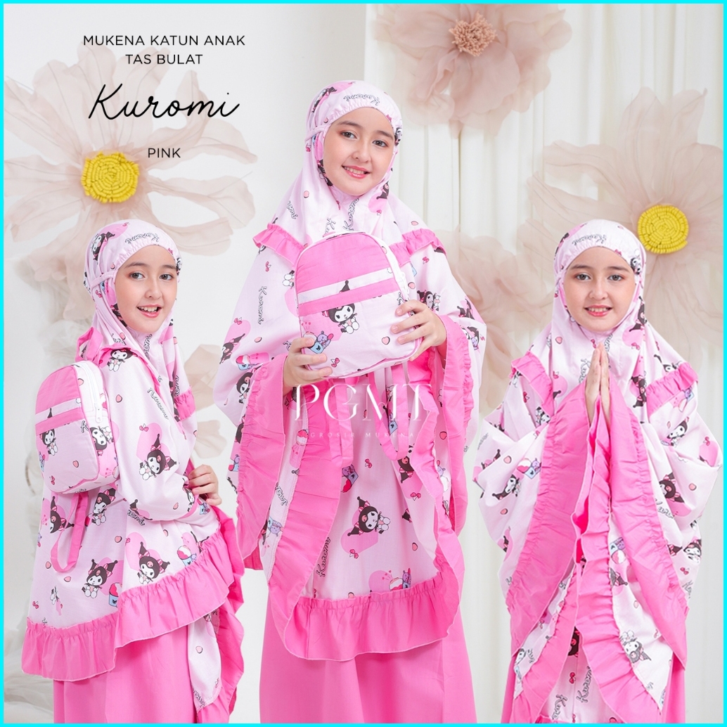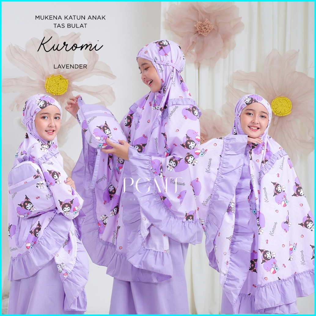 Pusat Grosir Mukena Tasik - Mukena Anak Katun Tas Bulat Motif Kuromi Kuromi Rayon 2in1 Rainbow Smile Lilac My Melody Pin
