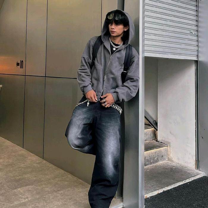 HOODIE BOXY OVERSIZE - DARK HURACAN PECAH POLA DOUBLE ZIPPER LIMITED EDITION UNISEX COTTON 330GSM DARKNESS TEBAL - M FULL BOX