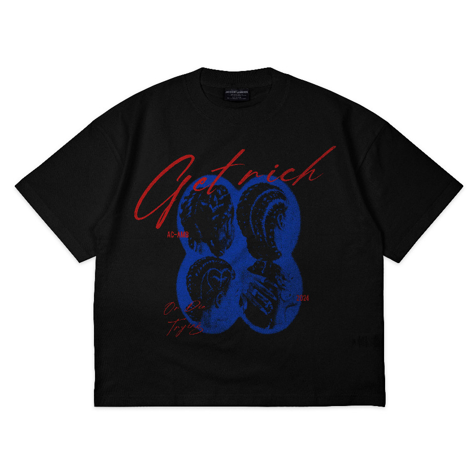 [PROMO] Boxy Oversized TShirt Get Rich Black Unisex Cotton Combed 20s