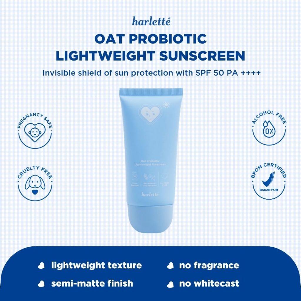 [Star] Harlette Oat Probiotic Lightweight Sunscreen SPF 50 PA++++ | Sensitive, Acne Prone, UV Protection, Skin Barrier