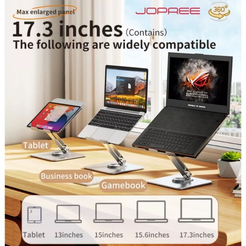 JOPREE P30 Desktop Metal Stand 360 Rotate Laptop Notebook Macbook Aluminium Adjustable Size 17 inch