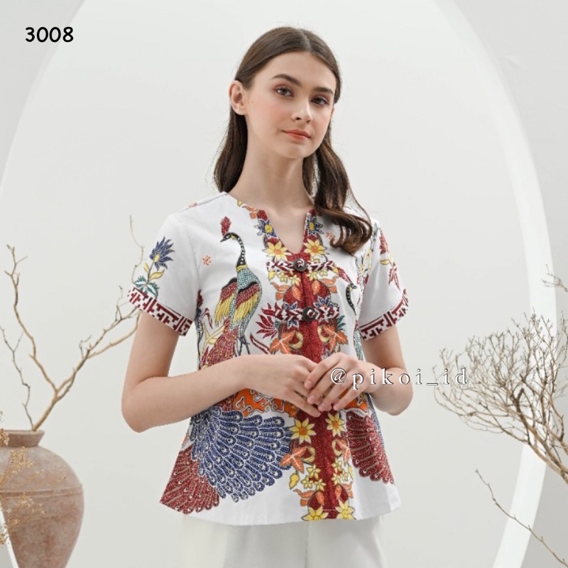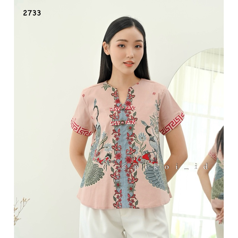 [PROMO] Atasan batik merah Cheongsam batik wanita baju batik etnik seragam batik kantor cewek 208
