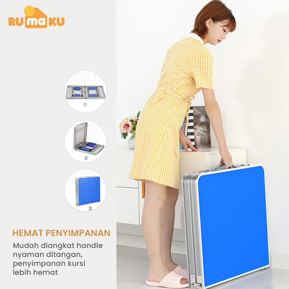 RUMAKU Meja Lipat Jualan Outdoor Piknik Camping Foldable Desk Portable Model Koper Free 2 Kursi