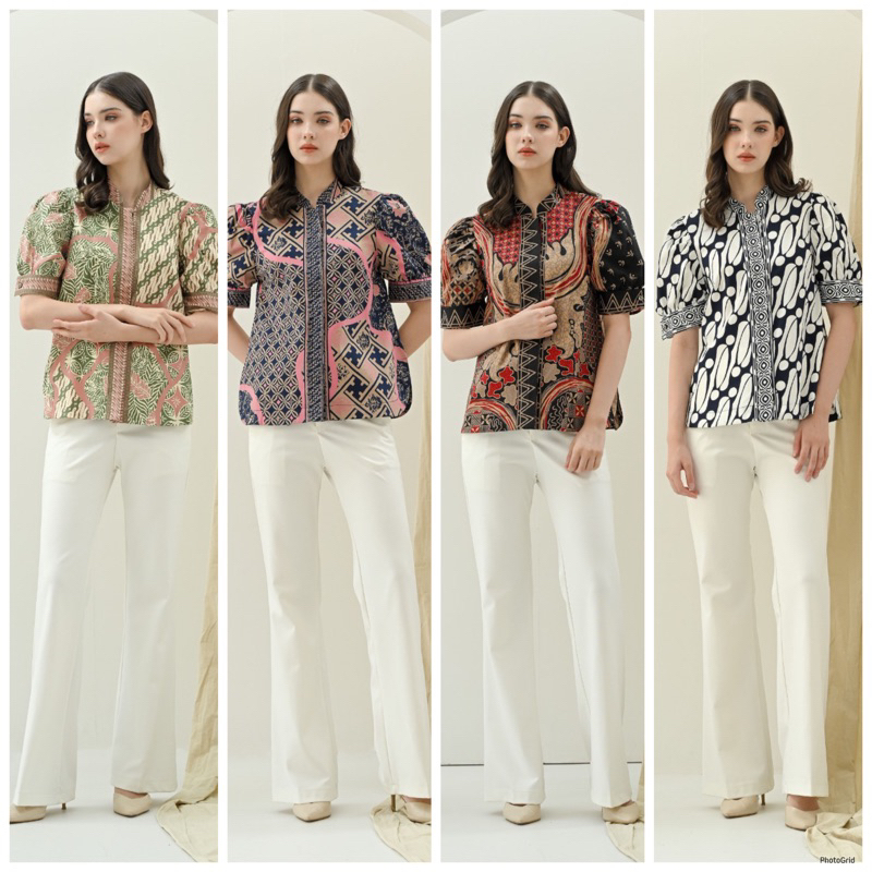 [PROMO] Atasan batik wanita modern seragam kantor murah Baju batik lengan balon pendek 3501 317