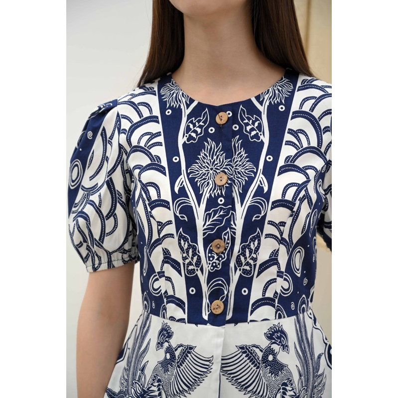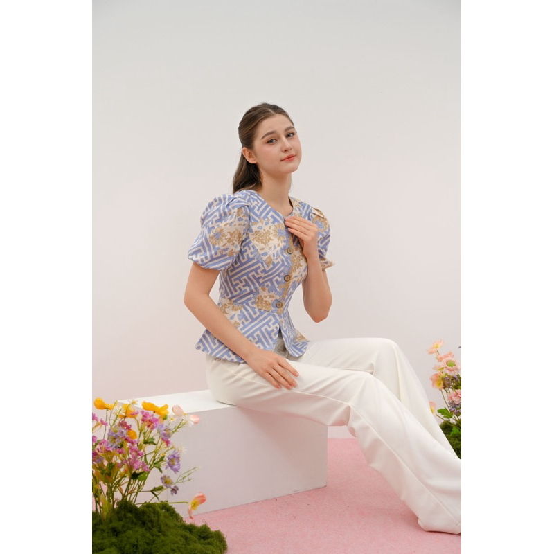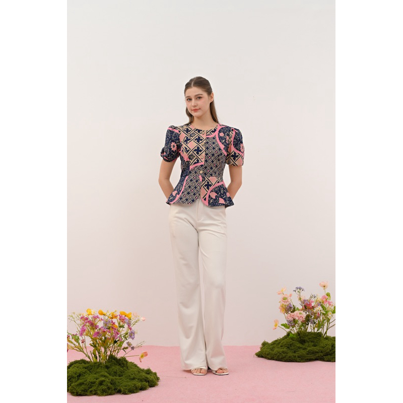 [PROMO] Pikoi_id Atasan wanita batik lengan pendek baju batik wanita modern lengan balon gaya korean baju peplum batik 4122