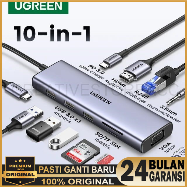 UGREEN HUB 10 in 1 Type-C to USB3.0 HDMI VGA RJ45 Audio PD SD TF - Ugreeb 15601 80133