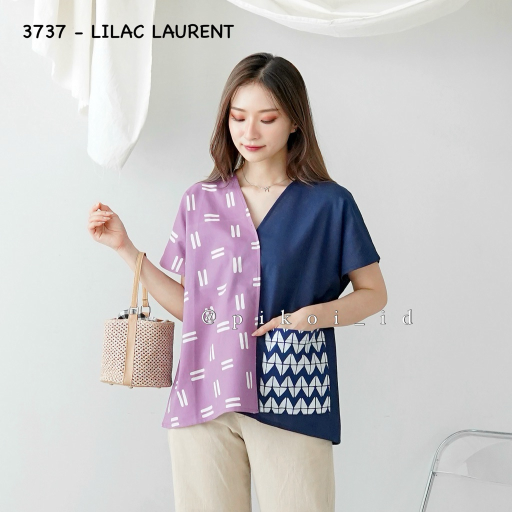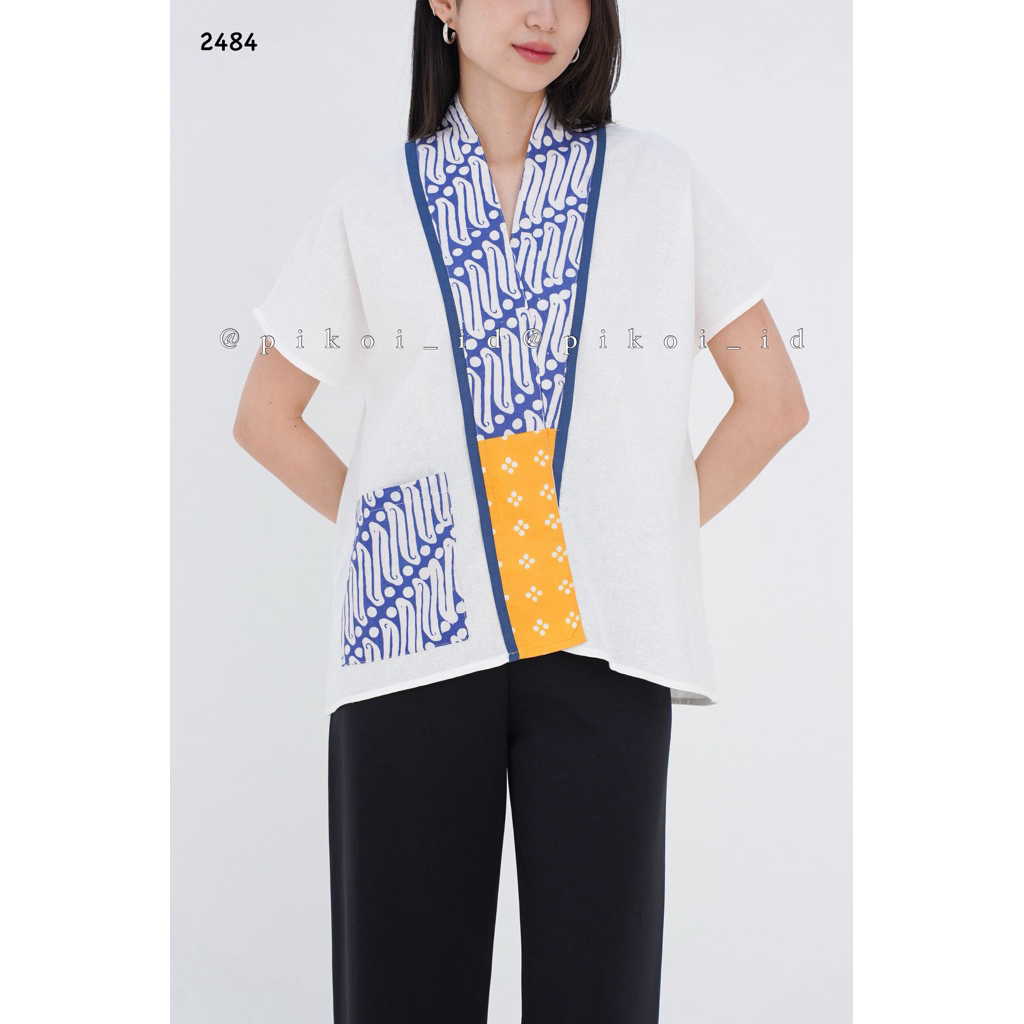 [PROMO] Atasan batik wanita modern blouse batik lengan pendek top batik v neck seragam kantor merah 2484