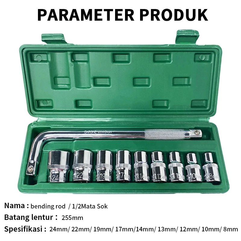 [PROMO] Kunci Shock Set 10pcs Mata Kunci Shock Set 12 Kunci Sock Pas Set 6pt Gagang Sock