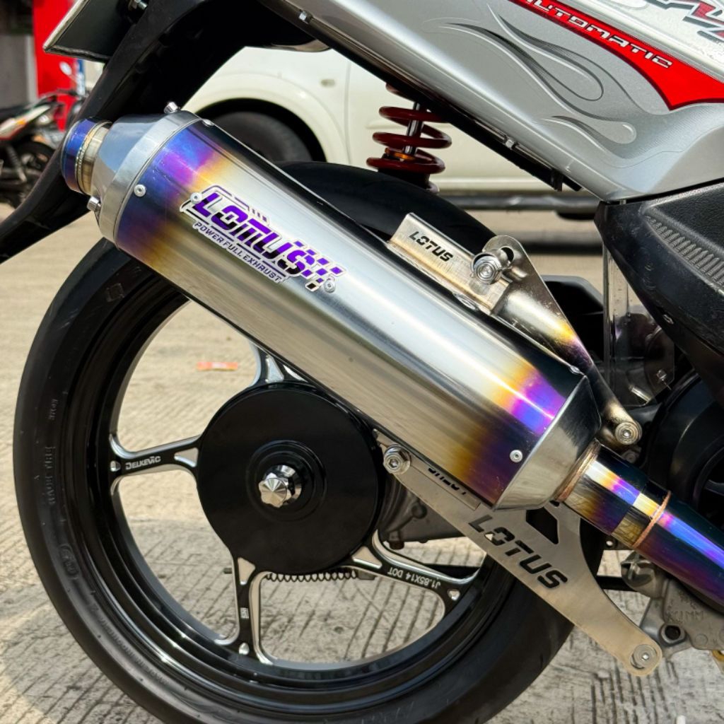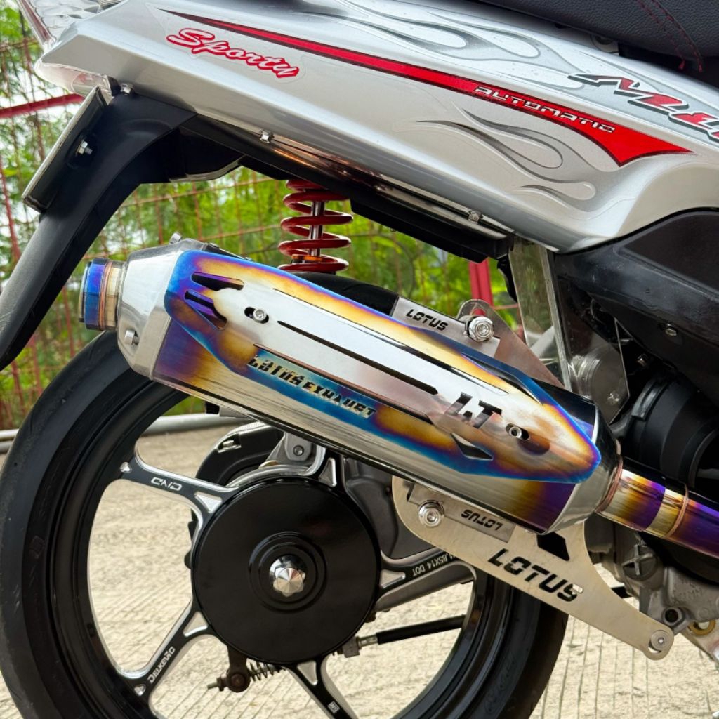 KENALPOT STANDAR RACING LOTUS MIO KARBU .MIO SMAILE.MIO SPORTY MODEL SHIJIRO CEKLIS UNGU +BREKET LOTUS INLET 38 DAN INLE