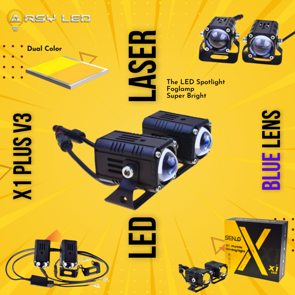 mini laser senlo x1 plus V3 blue lens lampu led motor mobil kabut foglamp sorot 25w