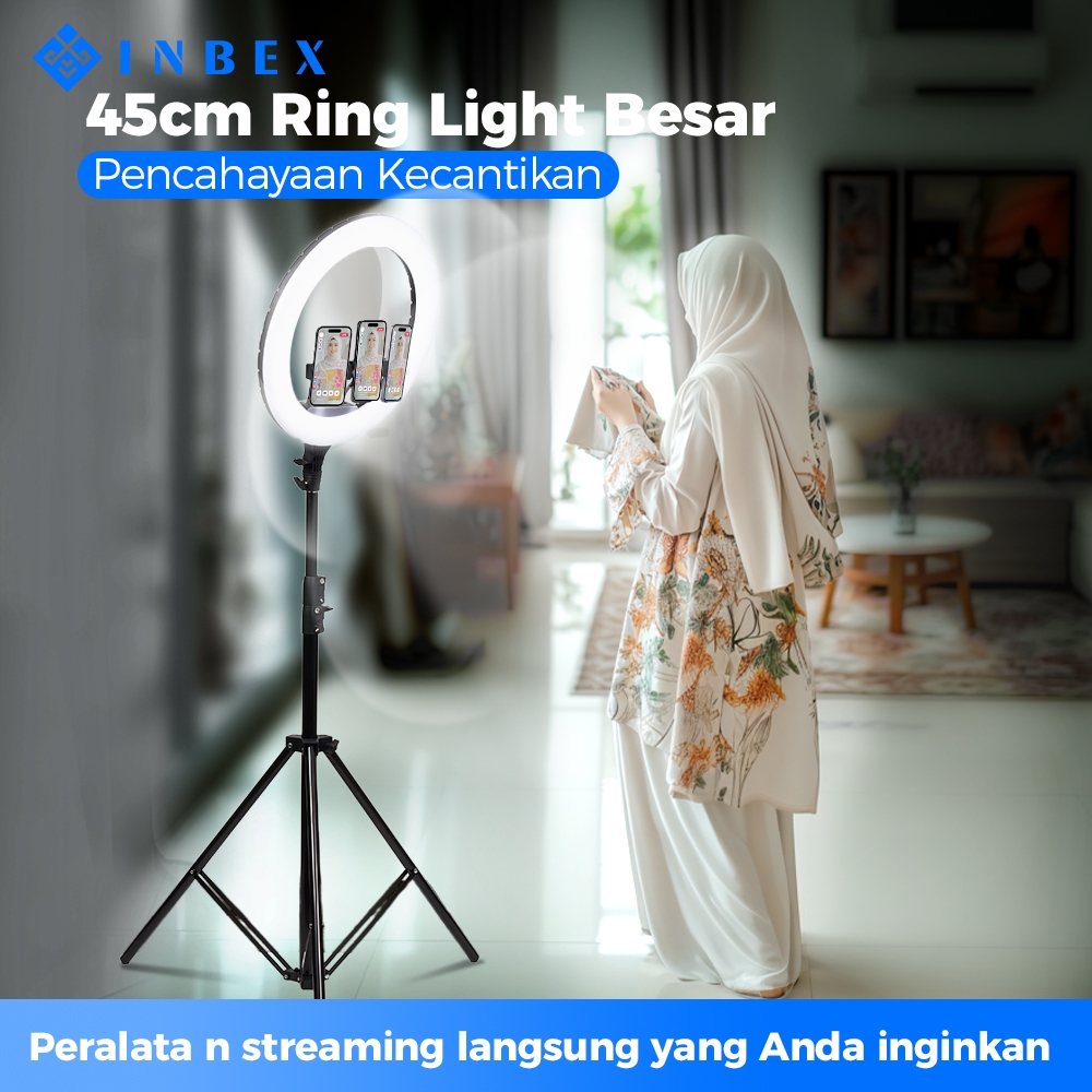 INBEX 45CM Ring Light Besar 3 Holder HP Dimmable Beauty Vlogge/live/foto lampu studio
