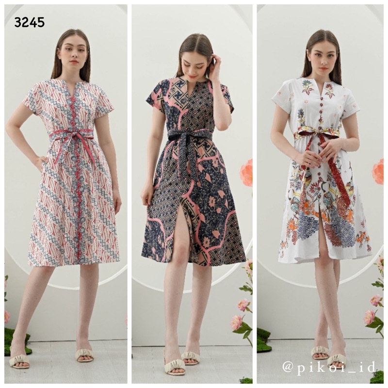 [PROMO] Dress batik wanita modern lengan pendek busui friendly dress ikat tali batik kantor 3245 303